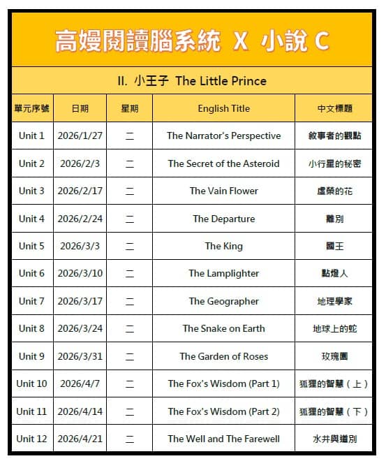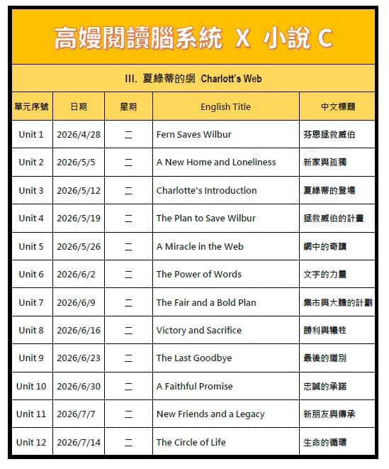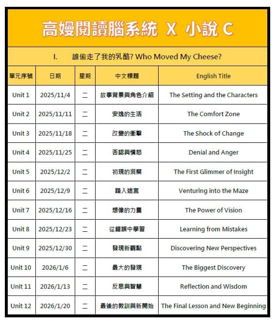我親自設計的「小說C × 閱讀腦系統」完整48單元課表,