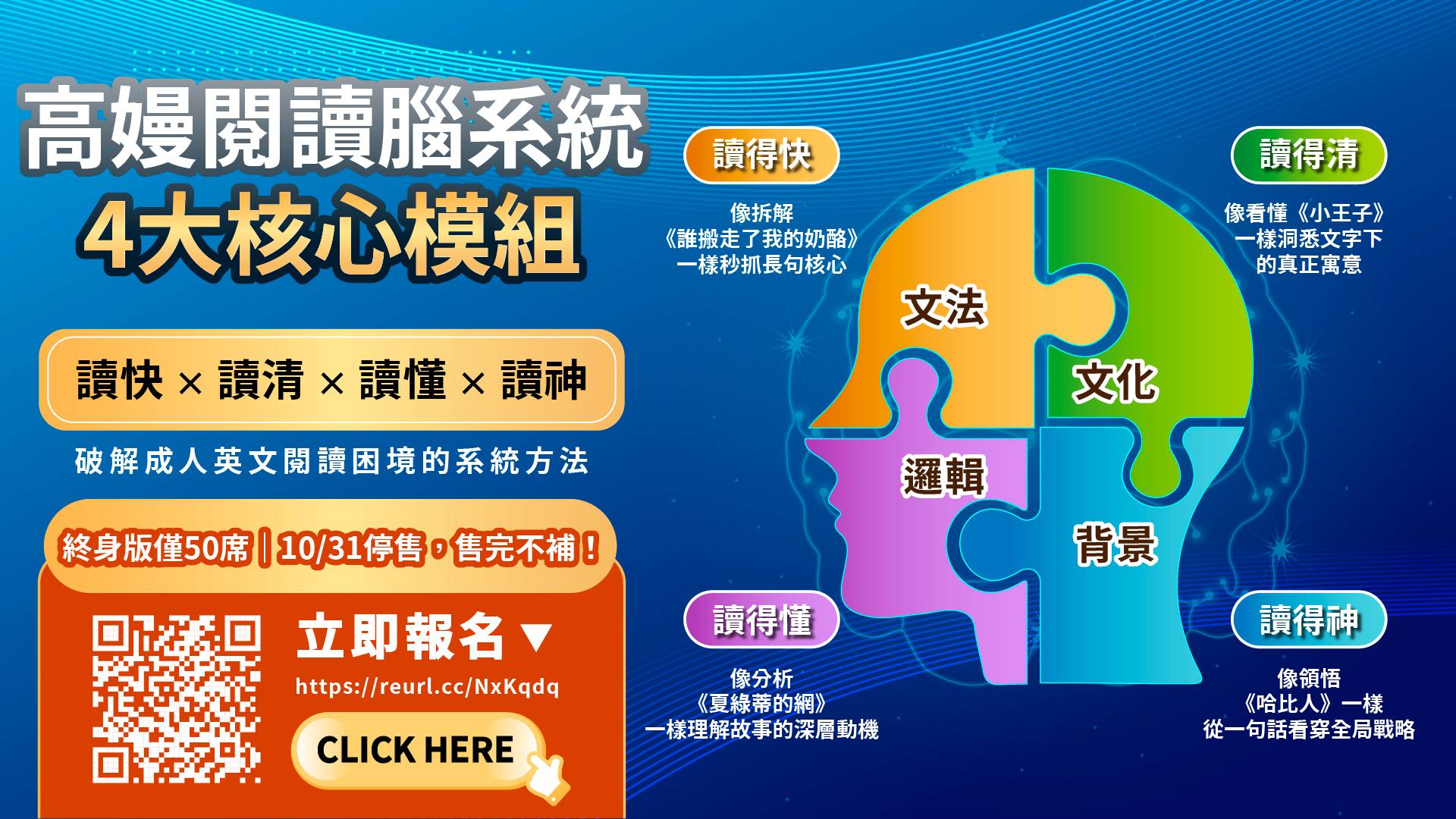 明年的今天,你已經輕鬆讀完四大經典。當你再遇到任何英文原文時,不再是卡關和挫折,而是能自然地運用「快清懂神」,享受那種掌握一切的閱讀超能力。