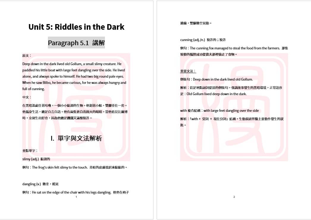 為了讓你親身體驗,我特別釋出 《哈比人》第五單元PDF試閱版,